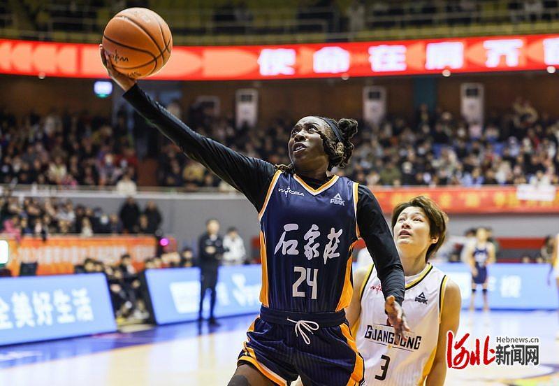 1月30日,石家庄英励24号外援西德尼(左)在比赛中。